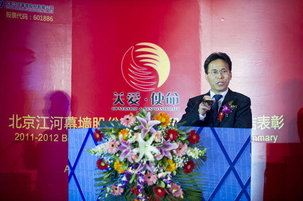 劉董事長表示,江河幕墻2011年的輝煌是全球江河人共同努力付出的成果。劉董事長在大會上對獲獎的團體和個人表達了熱烈祝賀,對全體江河人的辛勤付出鞠躬致謝并向全體家屬致以節(jié)日問候!