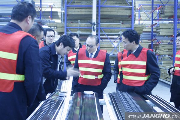 隨后,潘董事長一行與公司劉董事長等高層領(lǐng)導(dǎo)進(jìn)行了親切友好的座談。座談結(jié)束后,考察組一行在劉董事長的陪同下,前往江河幕墻建成并投產(chǎn)的全球幕墻行業(yè)最大的單體幕墻制造工廠。在國際一流、國內(nèi)領(lǐng)先的現(xiàn)代化工廠內(nèi),潘董事長一行細(xì)致考察了江河幕墻行業(yè)領(lǐng)先的技術(shù)設(shè)備、倉儲(chǔ)車間、自動(dòng)化流水線及成品包裝養(yǎng)護(hù)等,對(duì)部分江河幕墻獨(dú)創(chuàng)的技術(shù)工藝進(jìn)行了仔細(xì)詢問并觀看了技術(shù)人員的現(xiàn)場精密測試。參觀過程中,潘董事長屢次對(duì)江河幕墻的工廠布局、技術(shù)設(shè)備、制造工藝等展露出贊賞的笑容。